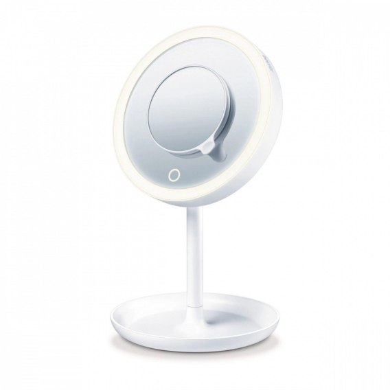 Lusterko kosmetyczne BS 45 firmy Beurer wyróżnia się 28 jasnymi diodami LED, które można bezstopniowo ściemniać. Do nakładania makijażu, golenia czy dla osób noszących soczewki kontaktowe: Małe dodatkowe lusterko z 5-krotnym powiększeniem zapewnia doskonałą widoczność wszystkich szczegółów. U podstawy lusterka do makijażu znajduje się praktyczna tacka, która doskonale nadaje się do przechowywania kosmetyków do makijażu lub biżuterii.