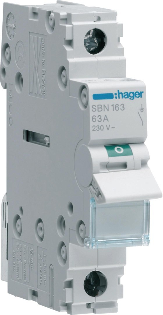 Rozłącznik izolacyjny, szer. 1 moduł. 1P, 63A HAGER SBN163